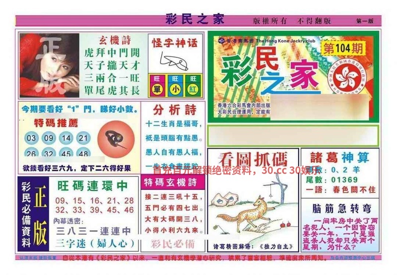 104期:男女②肖【男肖+鸡兔】开狗32准 |