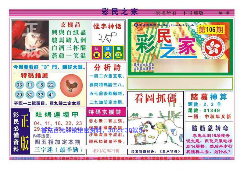 106期:男女②肖【女肖+马龙】开猪43准 |
